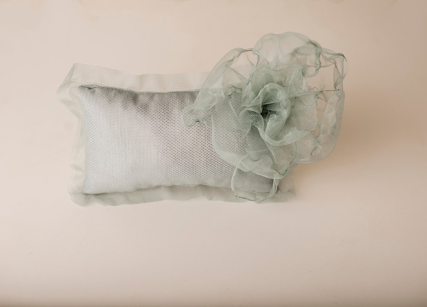 The tulle pillow decorated with handmade flower.